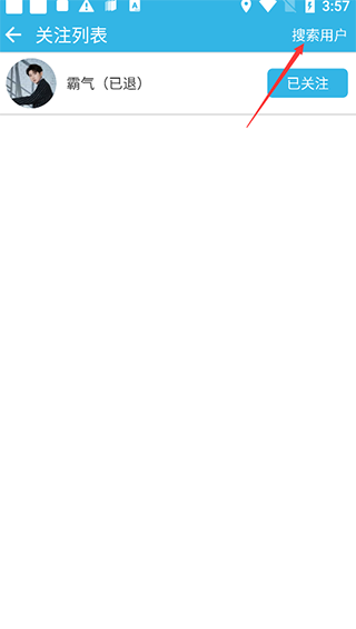 3、接下来右上角便有“搜索用户”的功能,点击进去。