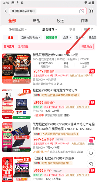 3、在搜索结果页点击“新品联想拯救者Y7000P2025补贴”商品,进入详情页。